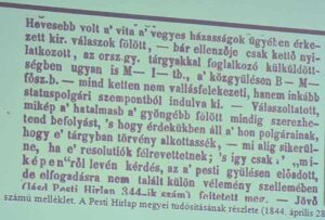 Érdekes volt a korabeli politizálás lehetőségei, formái, az akkori hírközlési módok bemutatása. Mai szemmel és technikai feltételekkel nézve egy lassú, nehézkes vitázási, párbeszéd lehetőség volt, és kevés tömegtájékoztatási eszköz. Hosszú idő, és folyamat kellett egy-egy törvényjavaslat végig viteléhez.